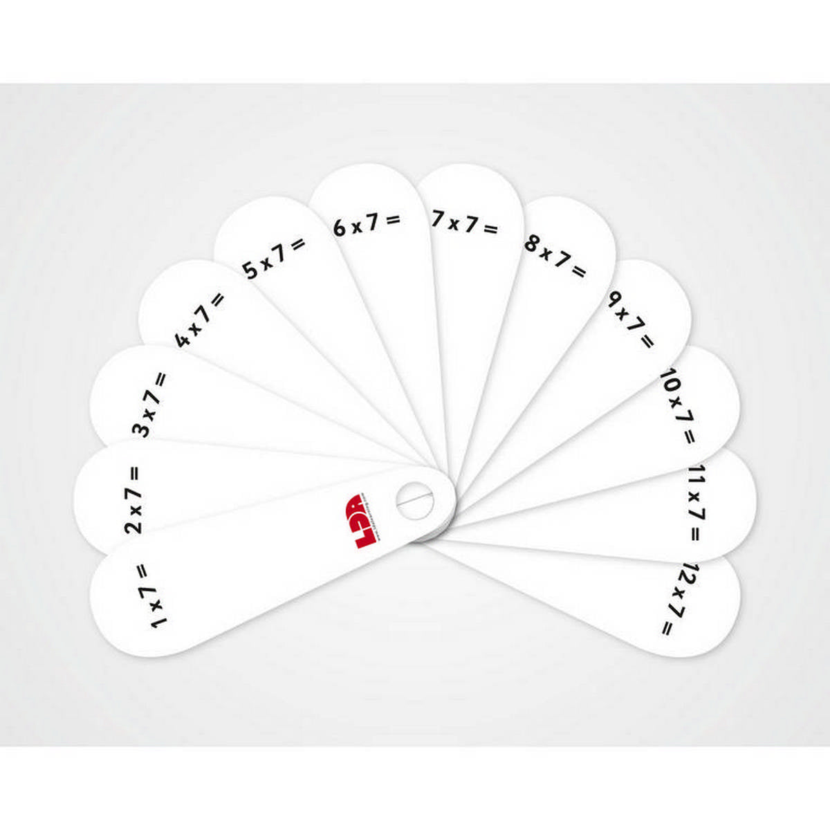 Make learning times tables fun. These high quality fans manufactured from durable plastic feature a times table sum on one side and the answer on the reverse. An excellent tactile resource to help children learn times tables. The fan design makes it the perfect resource to encourage and support instant recall of times table facts. 12 petals per fan. Riveted at the base for easy handling. Pack of 5. Size 115mm x 40mm