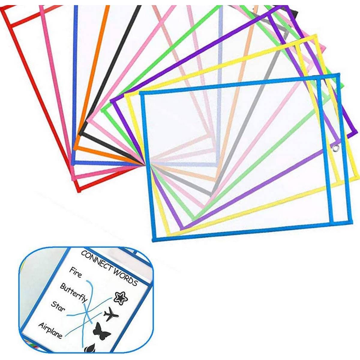 Includes 10 Wipe-Clean Pockets & 10 Black Dry erase markers