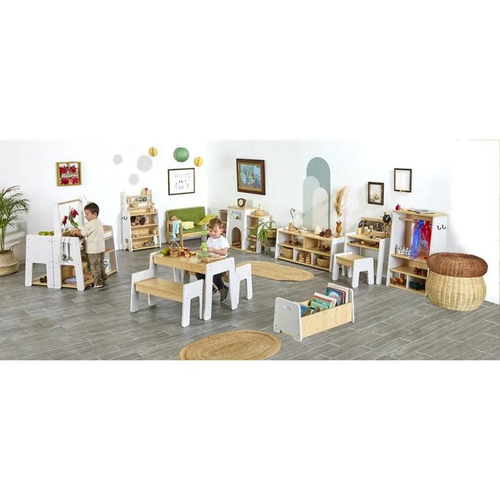 With this fabulous bumper set, children have all the resources they need for a magical role play area. Encourage them to cosy up next to the fire place, take a seat at the table using our sturdy benches, or practise cooking up a storm with our kitchen dresser, unit, hob and sink! Perhaps it’s time to dress up - look no further with our dressing table and dressing up unit, providing all the prompting and storage your children need to take on an entirely new role! Or take a seat and relax with a book - as we’ve covered book storage too. With the natural, scandi design to each furniture piece, you’re sure to love this set up so much, you’ll want to redecorate your own home!