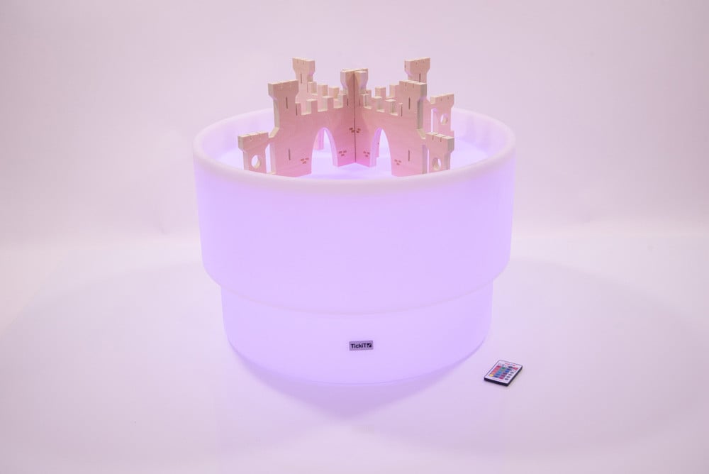 A combination set containing our colour-changing Sensory Mood Discovery Table with Forest Discovery Play Mat, Castle Discovery Dividers and imaginative play accessories.