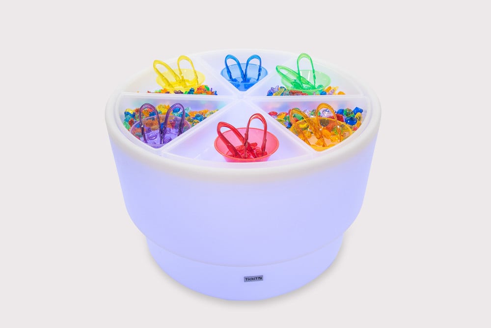 A combination set containing our colour-changing Sensory Mood Discovery Table with Discovery Trays and colour sorting accessories.