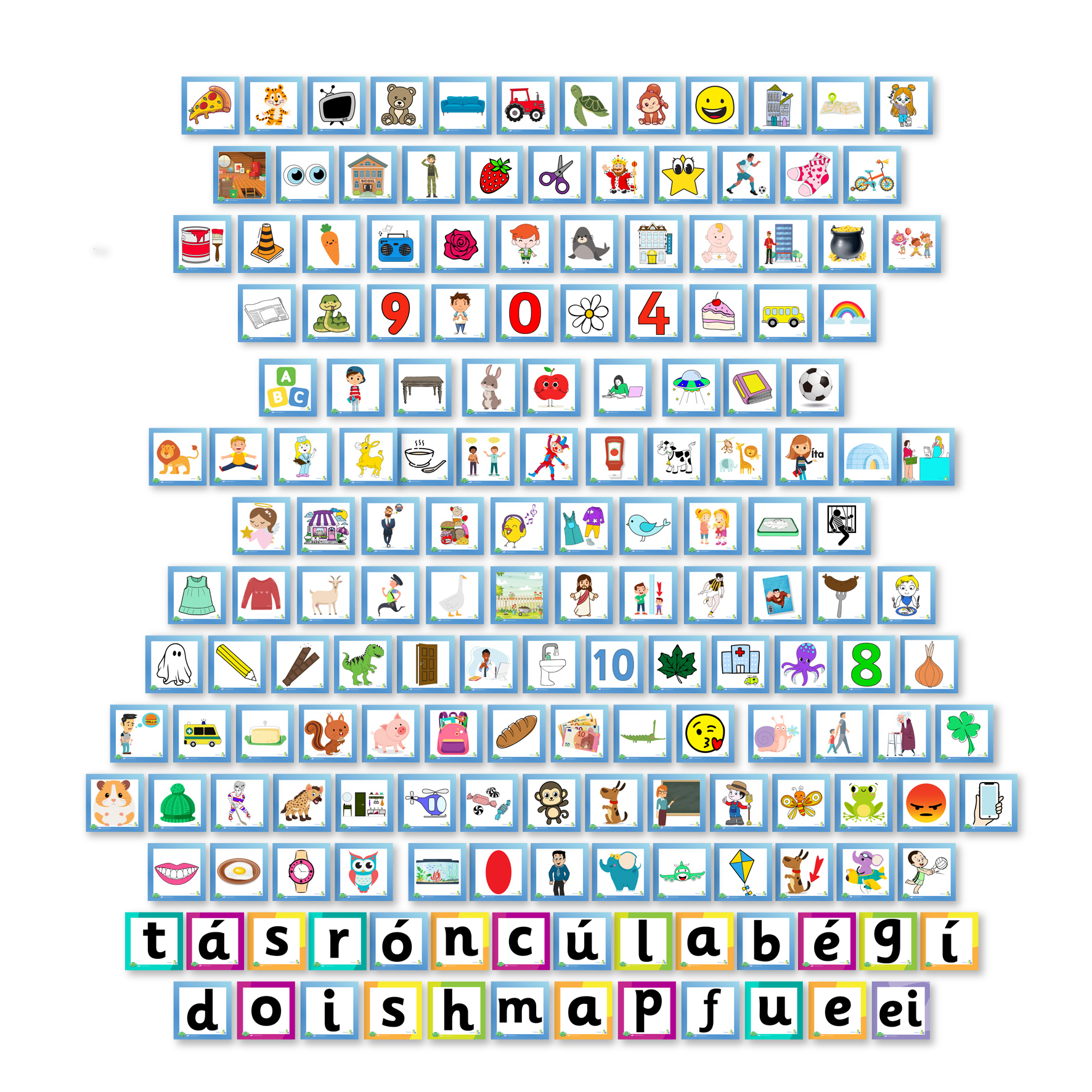 Fónaic le Fís Flashcards contain eight sets of flashcards in one pack, suitable for whole-class use: