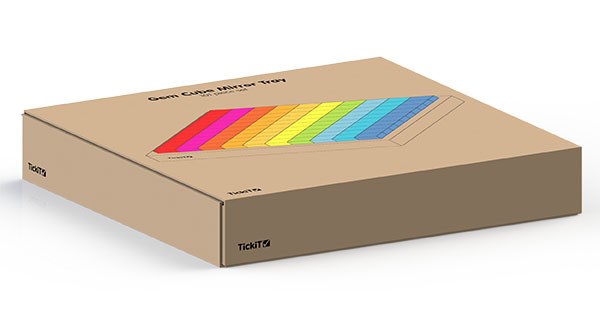 The set includes 100 colour acrylic gem cubes and a beechwood tray with mirrored acrylic and plywood base.