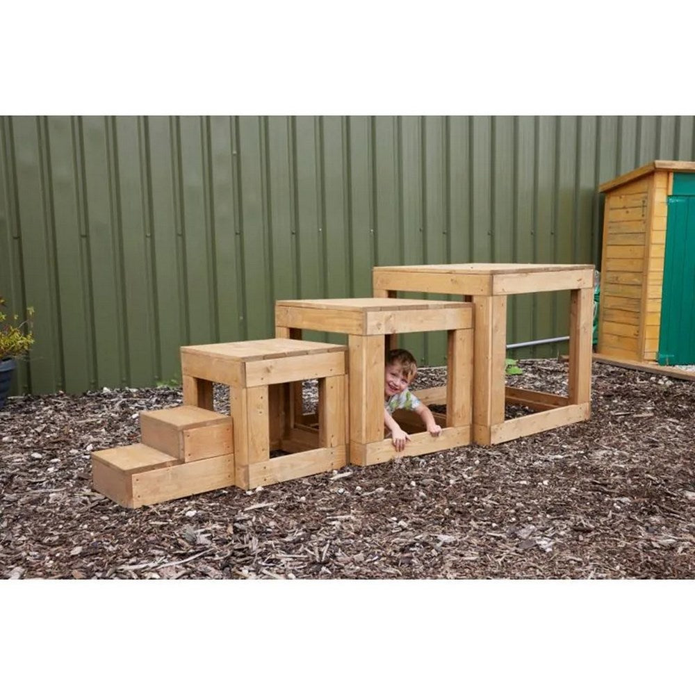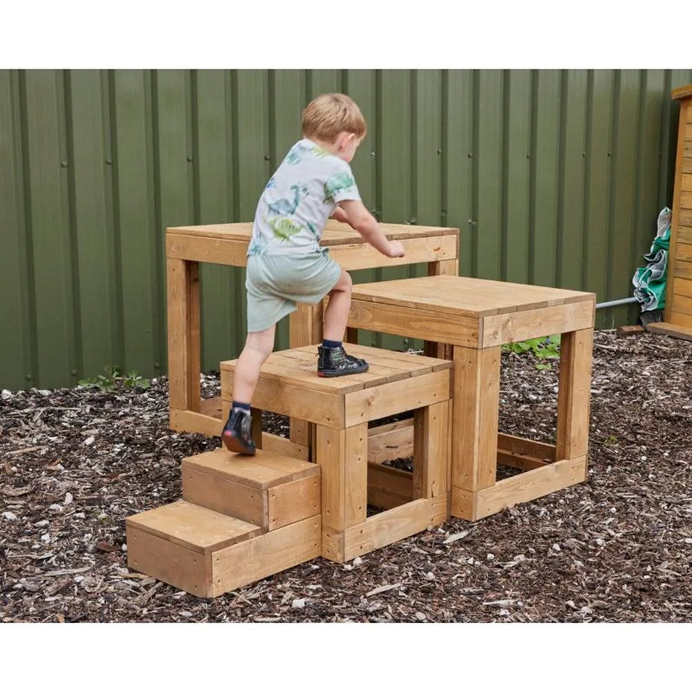 Crouch and spy or stretch and scale! Cosy’s Giant Cube Blocks are designed for energetic play. Thick planks in solid square shapes keep them stable and secure on level surfaces. Children will love designing and navigating new courses, problem-solving and gaining gross motor skills. With steps included, nobody’s excluded! Place on cushy grass or bark chips for supervised challenges or add our Safety Mats for extra padding, freeing young learners to explore and persevere.