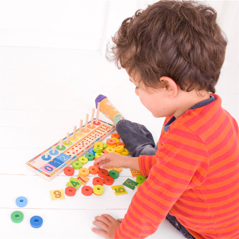 placed onto their individual pegs. Helps to develop dexterity and
