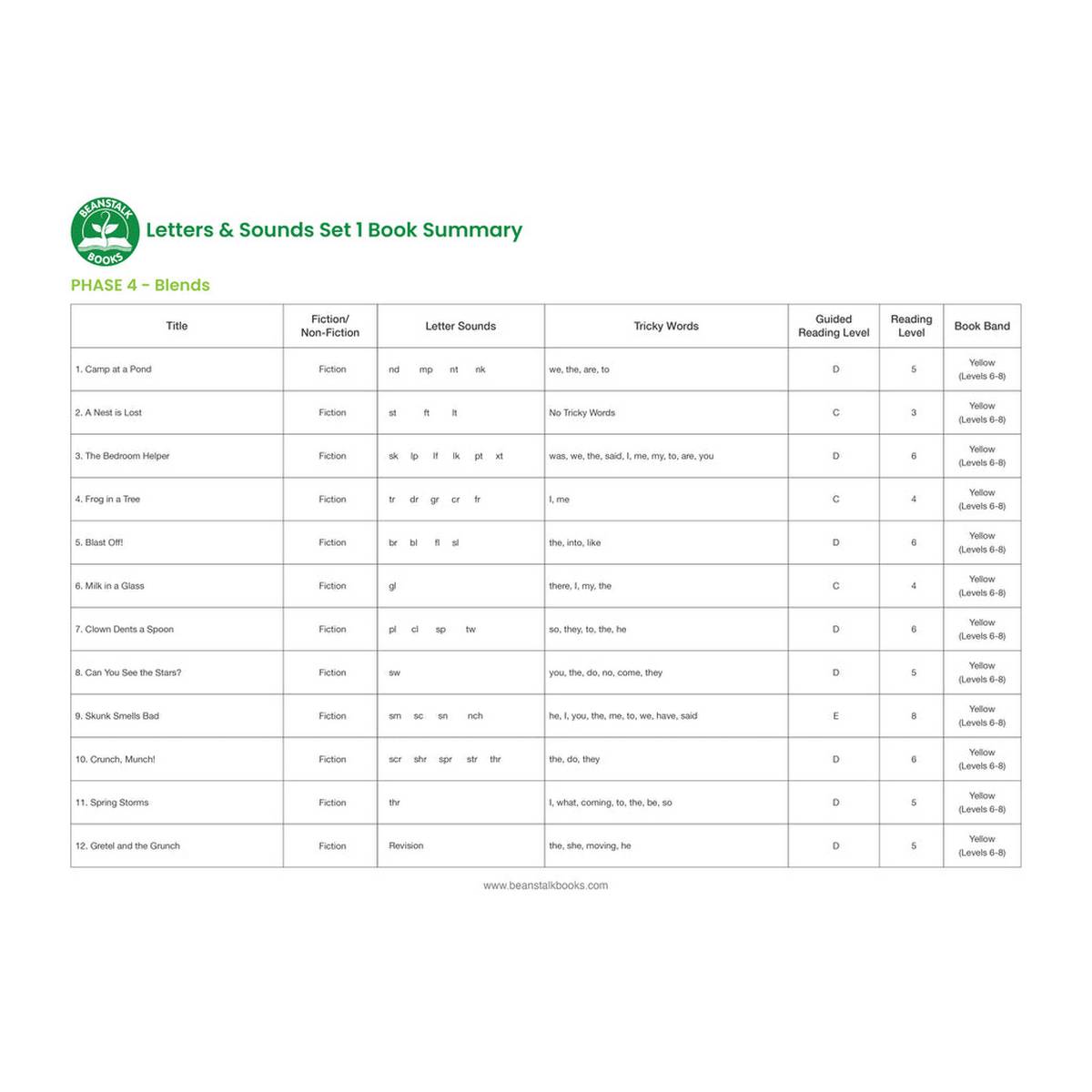 Blend readers introduce 38 different adjacent consonants (blends). Text uses only decodable regular words (according to the week by week progression) along with 'tricky words'. Blend readers have a strictly controlled vocabulary that follows the letter-by-letter progression.