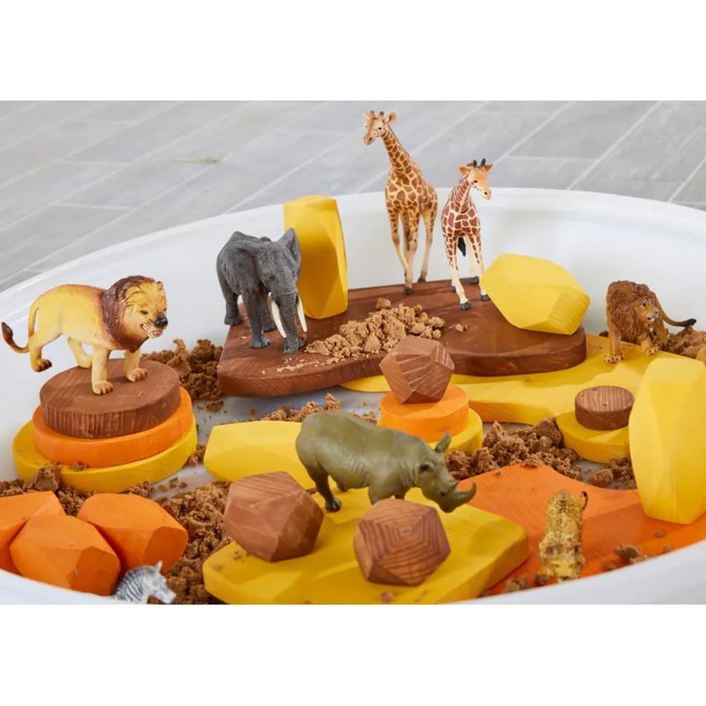 Give children a whole new way to engage in small world play with our Oasis Scene Set. We’re really on a roll - this is another set of our highly popular boulders in various landscape tones. This time we’re bringing safari and desert play to the forefront with these orange, yellow and brown pieces. Add safari animals and even real life sand to create an inviting small world play invitation for your tuff spot trays, sand trays and more.