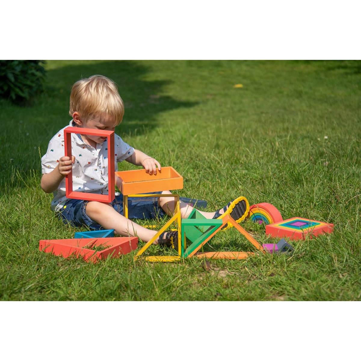 A very "versatile and open-ended resource" [said] one setting whose children used them to create patterns and design rooms which they filled with small-world play people and furniture. The shapes are also useful for helping the children to learn colours, shapes and sizes and use mathematical terminology such as "larger", "smaller, "taller" and "wider", which is great for broadening their descriptive vocabulary.