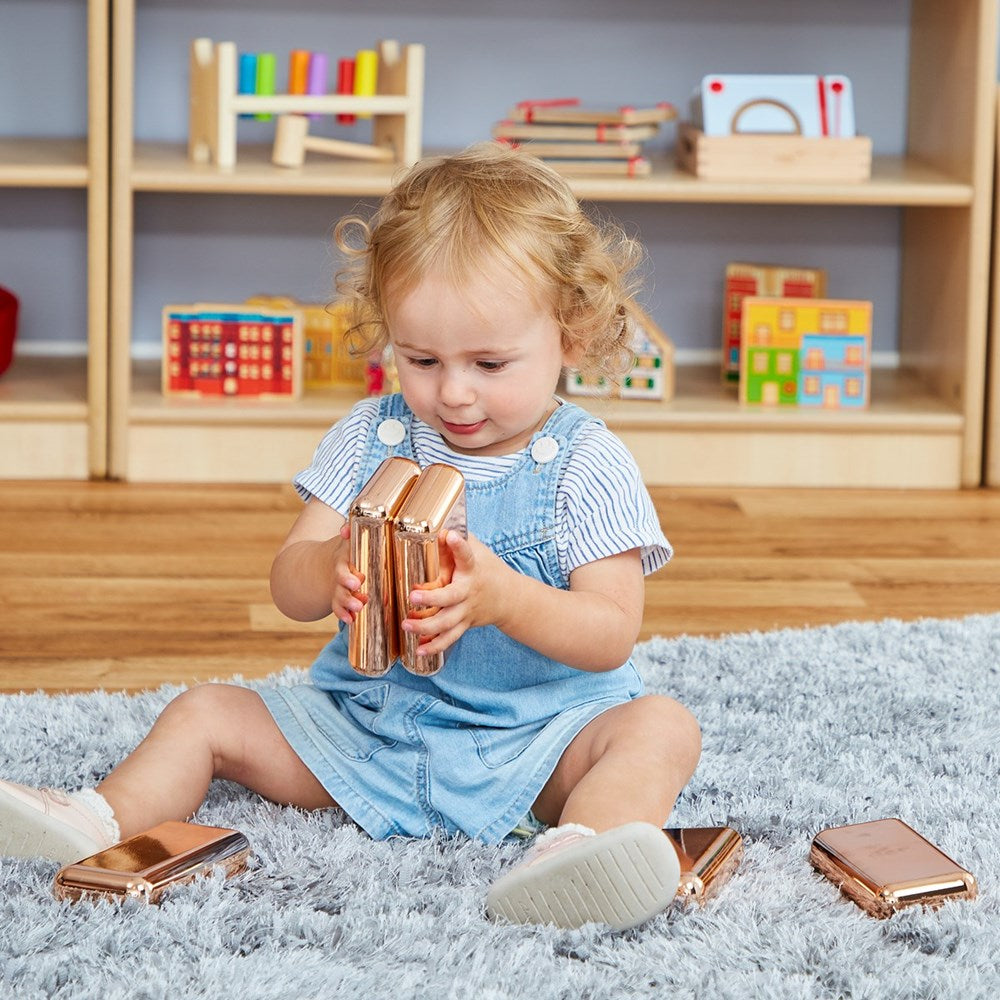 This set of five Rose Gold Magnetic Bricks from Hope Education have a shiny, smooth finish. They are light weight and easy to hold, yet durable. They are perfect for using as a sensory resource as well as for stacking and construction as they connect together through magnetism.