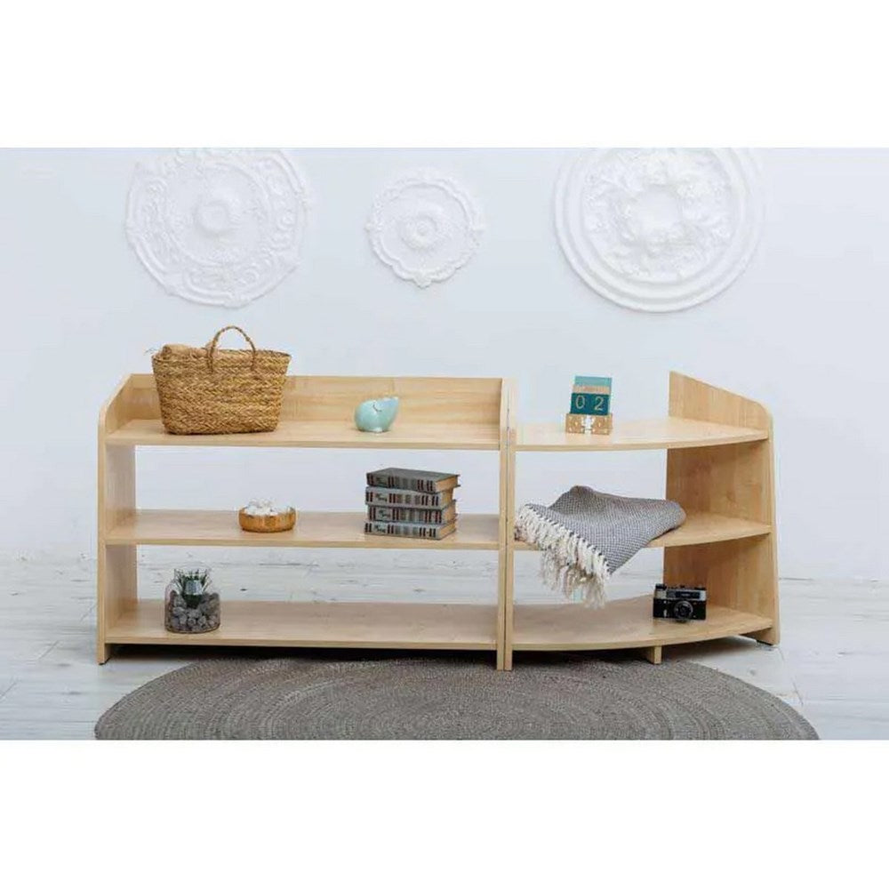 Enhances Organisation and Accessibility: Both the Shire Open Half Curved Shelving Unit and the Shire Open Shelving Unit encourage organisation and accessibility within the learning environment. With their spacious shelves and open designs, they facilitate easy access to materials from both the front and back, promoting seamless retrieval and storage for educators and young learners alike.
