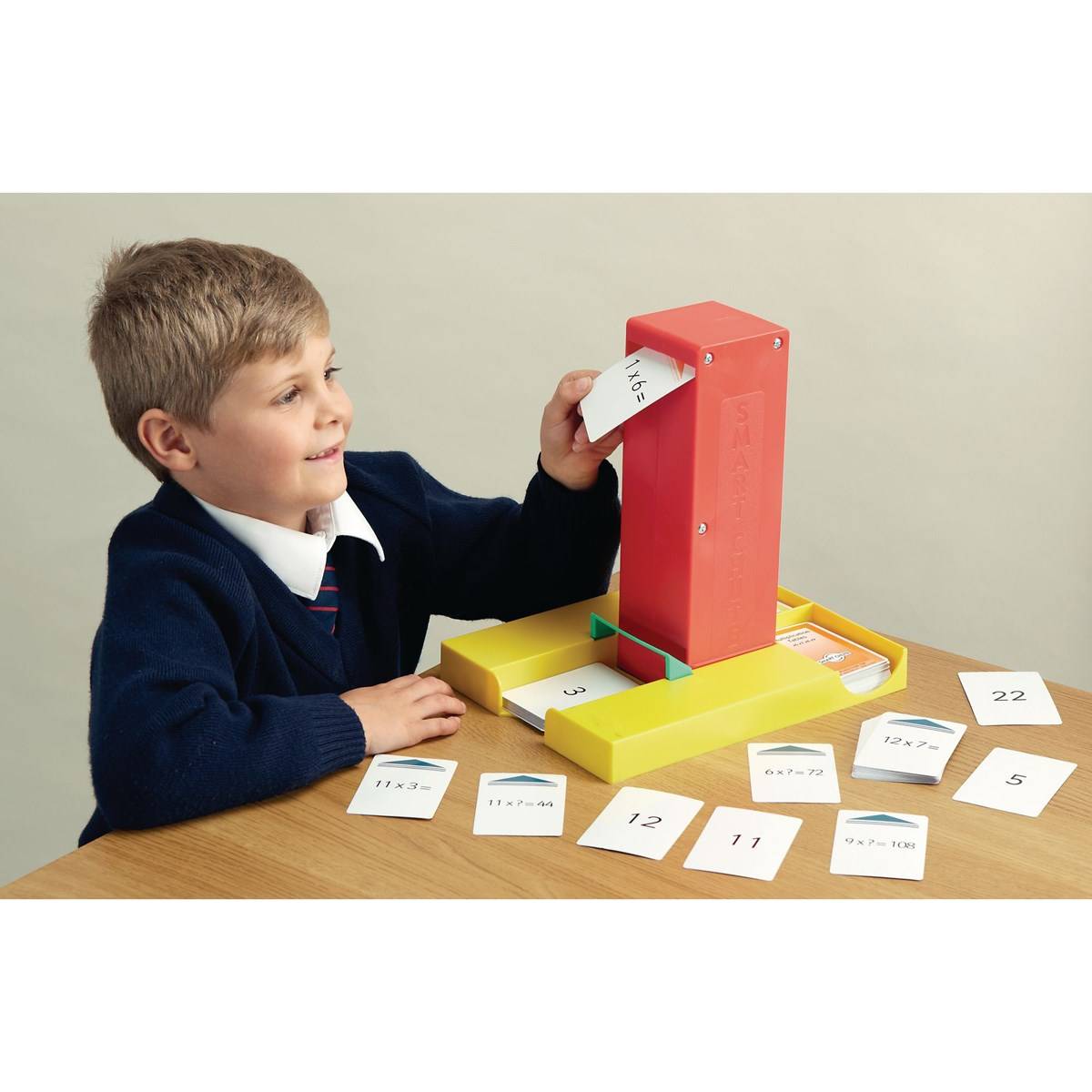 This high quality card flipper is a fun and exciting way to develop key numeracy skills. When posting the card in the Smart Chute, the student can say the answer (such as the equation 5 + 3) and the correct answer then miraculously appears at the bottom. The Smart Chute is a very popular resource and children will be intrigued as to how the Smart Chute can work out the correct answer. It reinforces key concepts and develops memory skills. The Smart Chute comes in three plastic pieces, which clip together and can be dismantled easily for portability. The Chute itself is made out of solid plastic and its durability will withstand maximum classroom use. There are over 40 literacy and numeracy cards compatible with the Smart Chute, plus a set of blank cards so that teachers can make their own packs. A perfect resource for individual work.