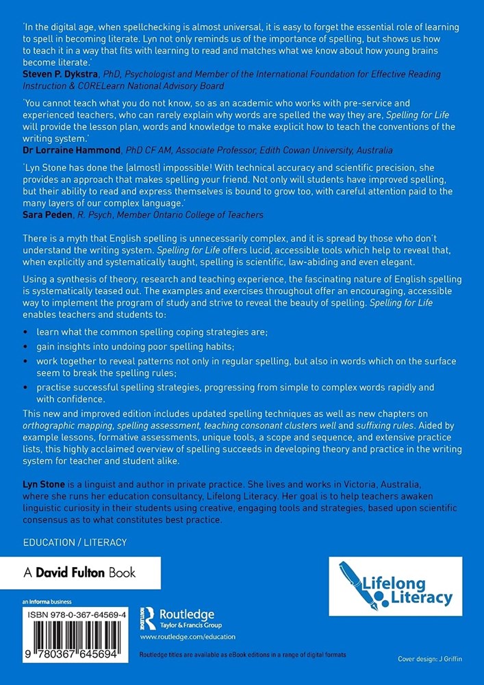 There is a myth that English spelling is unnecessarily complex, and it is spread by those who don’t understand the writing system. Spelling for Life offers lucid, accessible tools which help to reveal that, when explicitly and systematically taught, spelling is scientific, law-abiding and even elegant.