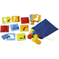 Each shape is drawn onto a cardboard counter so that children can familiarise themselves with the pieces, and play lotto. Then the pieces are hidden in a bag and, in turn, children have to identify each shape by touch and place it on the corresponding counter.
