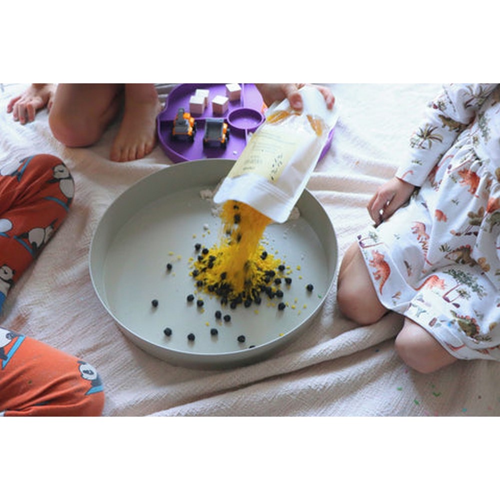 With their portable design, children can take their play anywhere, whether it's indoors, outdoors, or on the go. The included silicone lid makes storage and transportation a breeze, ensuring that playtime is always within reach. Additionally, the lid features dividers, allowing for organized sorting and providing options for different sensory materials. From sorting and counting to imaginative play, the possibilities are endless with Jellystone Tray Plays.