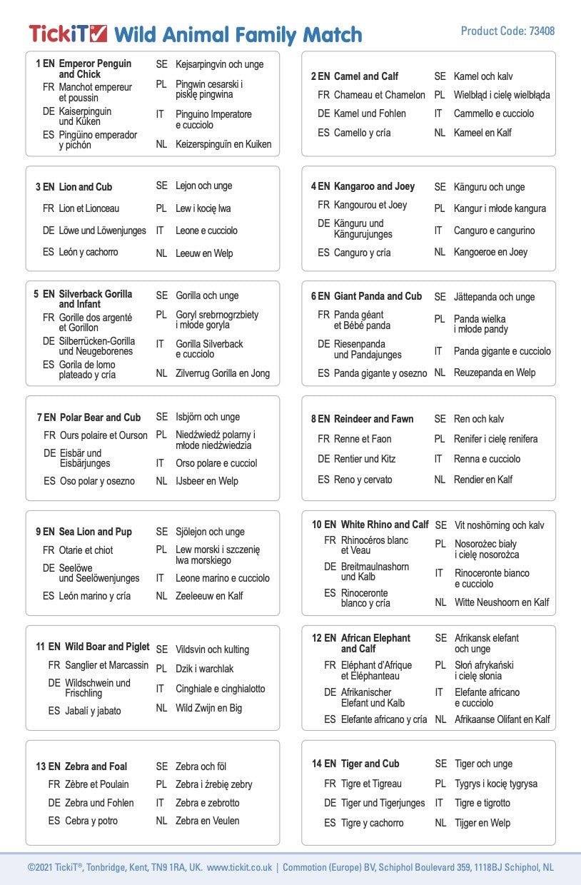 2. As a memory game - turn all the tiles face down and try to remember where the matching animal family pairs are located.