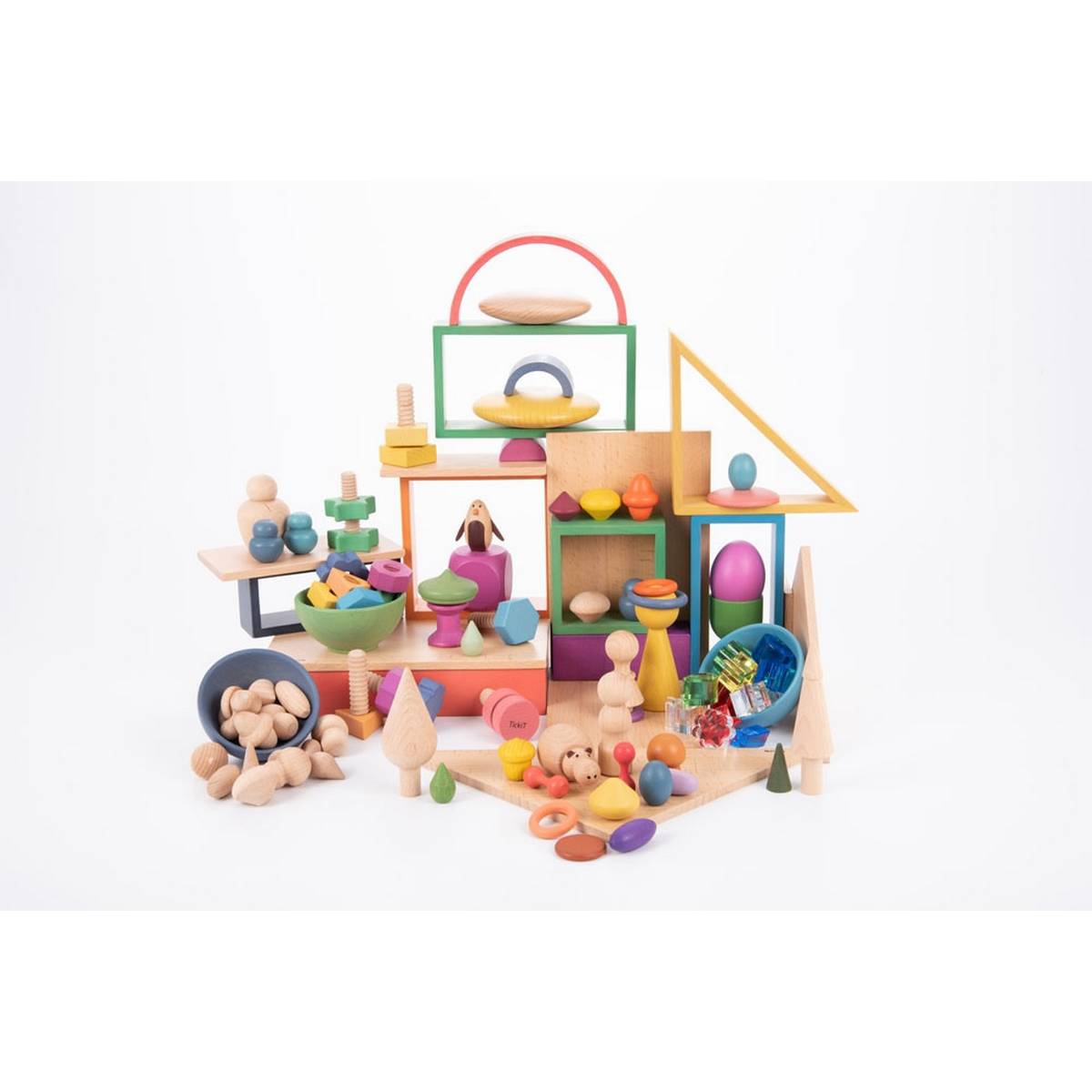 Meet our new animal friends! A beautifully made set of solid beechwood animals from around the world, with simple printed features and faux leather detailing to add to their charm. Children will love to use them in imaginative play and telling stories, and the animals naturally complement our Woodland Trees and Wooden Community Figures sets. Contains a stag, dog, cockerel, owl, sheep, pig, giraffe, hippo, elephant and penguin with a drawstring cotton bag.