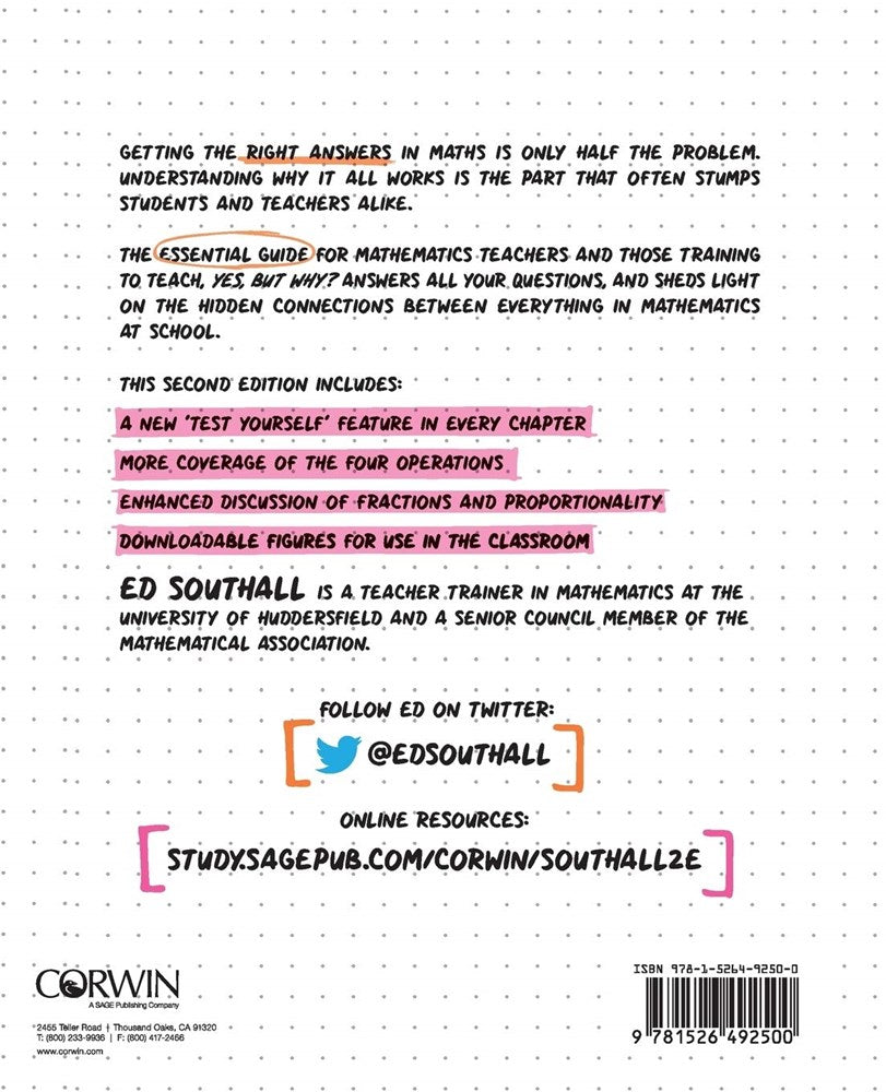 Getting the right answers in maths is only half the problem. Understanding why what you're doing works is the part that often stumps students and teachers alike. The essential guide for mathematics teachers and those training to teach, Yes, but why? answers all your questions, and sheds light on the hidden connections between everything in mathematics at school.